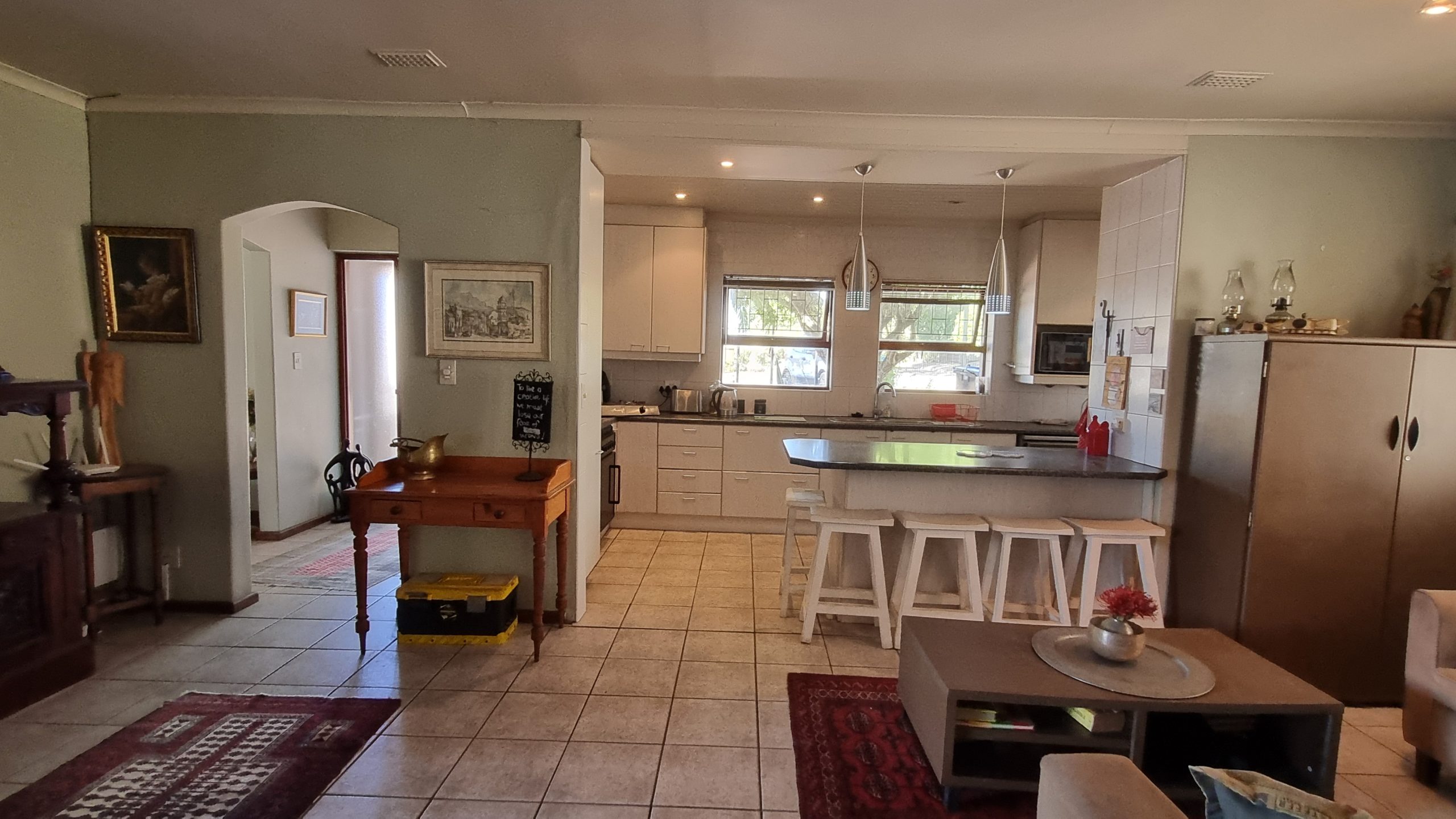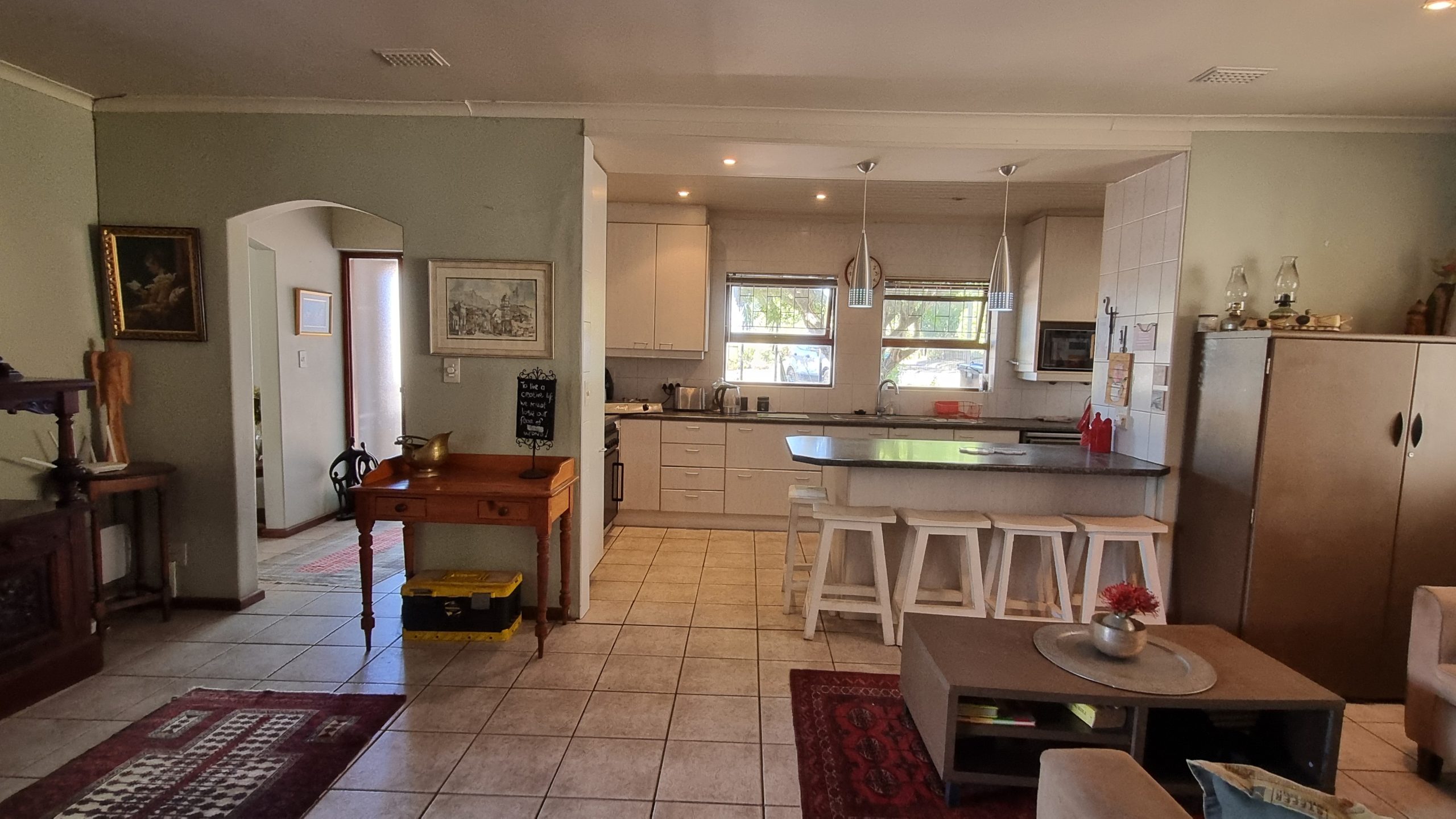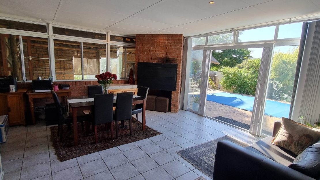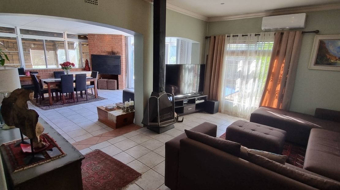 Offering 3 double size bedrooms, 2 bathrooms, 4 open plan living areas flowing to a most pleasant, fully enclosed pool area with a huge 43 m2 thatched roof lapa, braai en sparkling swimming pool.