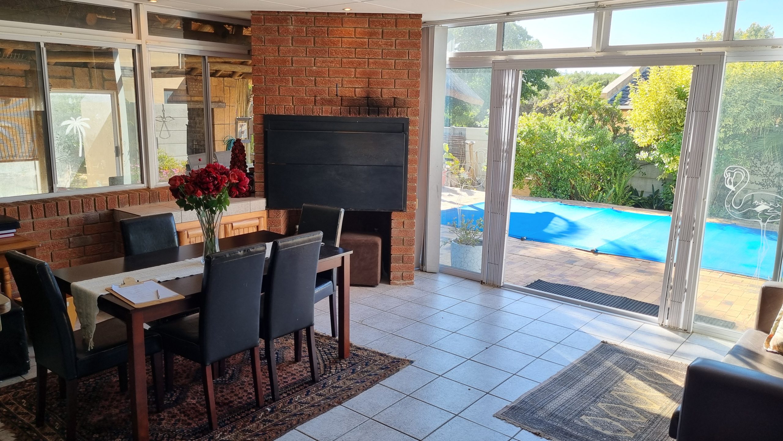 A spacious braai room, with a build in braai, leads the way to the swimming pool and partly enclosed lapa – making this property ideal for entertaining family and friends all year round.